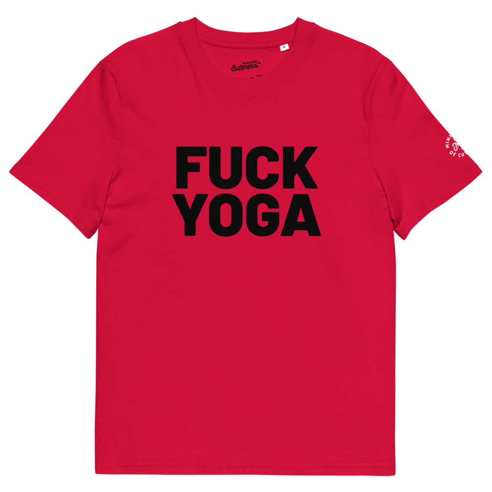 A big middle finger Ministry of Cuteness t-shirt to the yoga trend