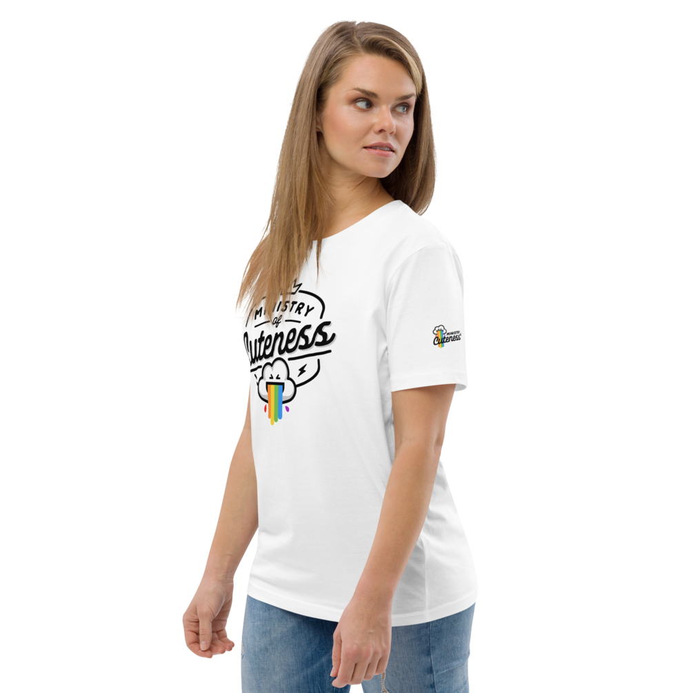 Our vintage Ministry of Cuteness logo takes a bold stand this Pride Month, defying the norm with a rebellious burst of color. Witness the audacious cloud that vomits rainbows, a symbol of unapologetic self-expression and punk pride. Join the uproar of individuality, love, and sassy nonconformity!