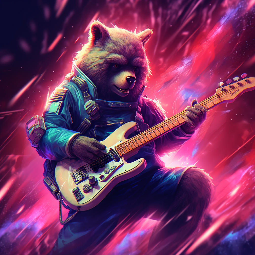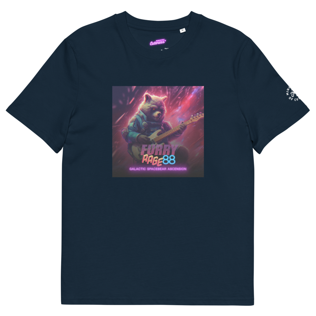 Introducing our mind-blowing t-shirt: "Galactic Spacebear Ascension"! This epic design features a guitar-wielding bear from the legendary band Furry Rage 88 (a totally fictional creation). Immerse yourself in the mesmerizing world of neon-lit synthwave nostalgia with this retro-inspired masterpiece. Channel your inner rockstar and embrace the cosmic vibes of the Galactic Spacebear.